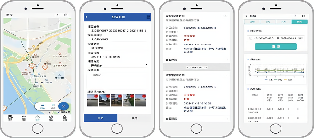 - 风险提前处置:为管网养护部门提供PC端、小程序等多终端可视化管理工具,实时推送溢流、淤堵等风险预警信息,辅助管理人员精准制定处置方案,实现从“被动应对”到“主动预防”的转变。